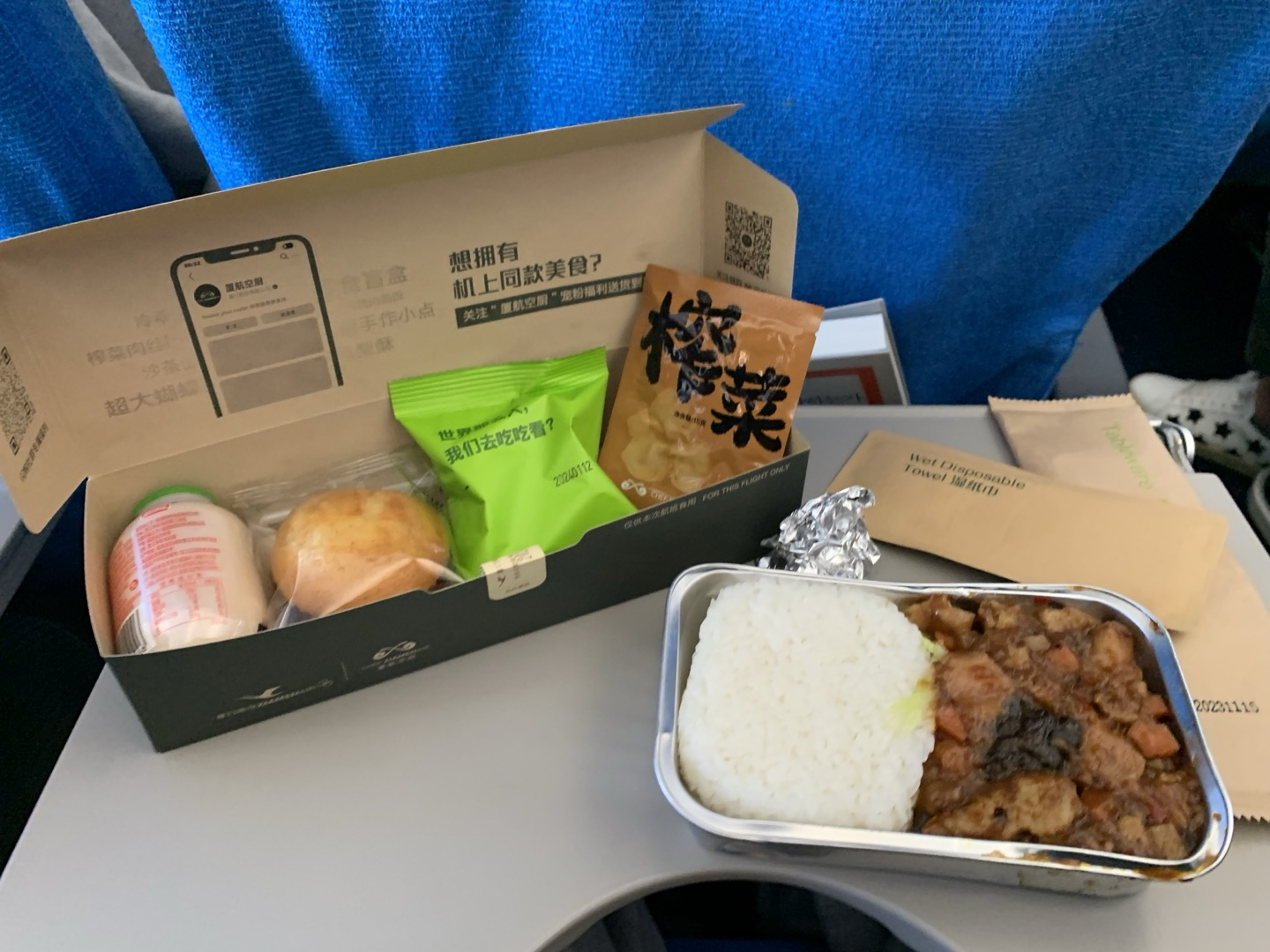 -기내식 종류는 두가지였는데 나는 닭고기덮밥인듯 하다. 중국 향신료 향이 좀 나는데 먹을만 했다. 빵은 맛있었다. (빵 좋아함.)